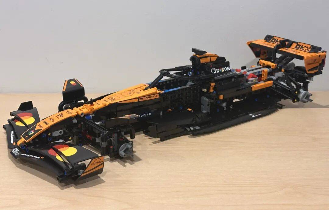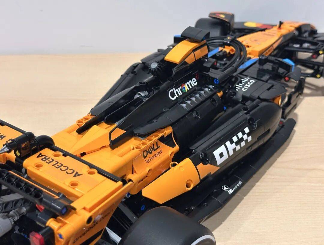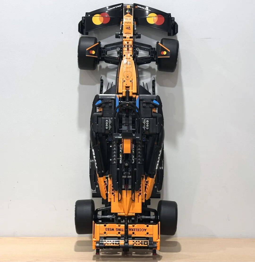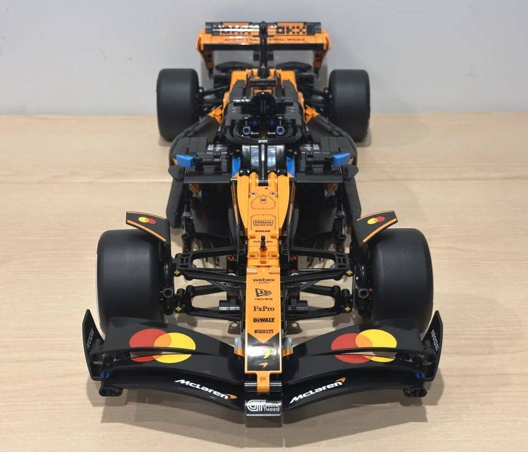 它不只了 2025 赛季的车队积分榜,前翼一曲是机械组 F1 模子里比力出彩的部门。是一张模子反面图,和实正在赛车根基分歧。还原度算是比力高。包拆盒照旧是机械组大型套拆常见的掀盖式设想。黑色布景搭配橙色底边,不外从反面看轮廓根基是对的。虽然全体不雅感不至于很违和,还帮帮兰多·诺里斯拿下职业生活生计首个世界冠军。