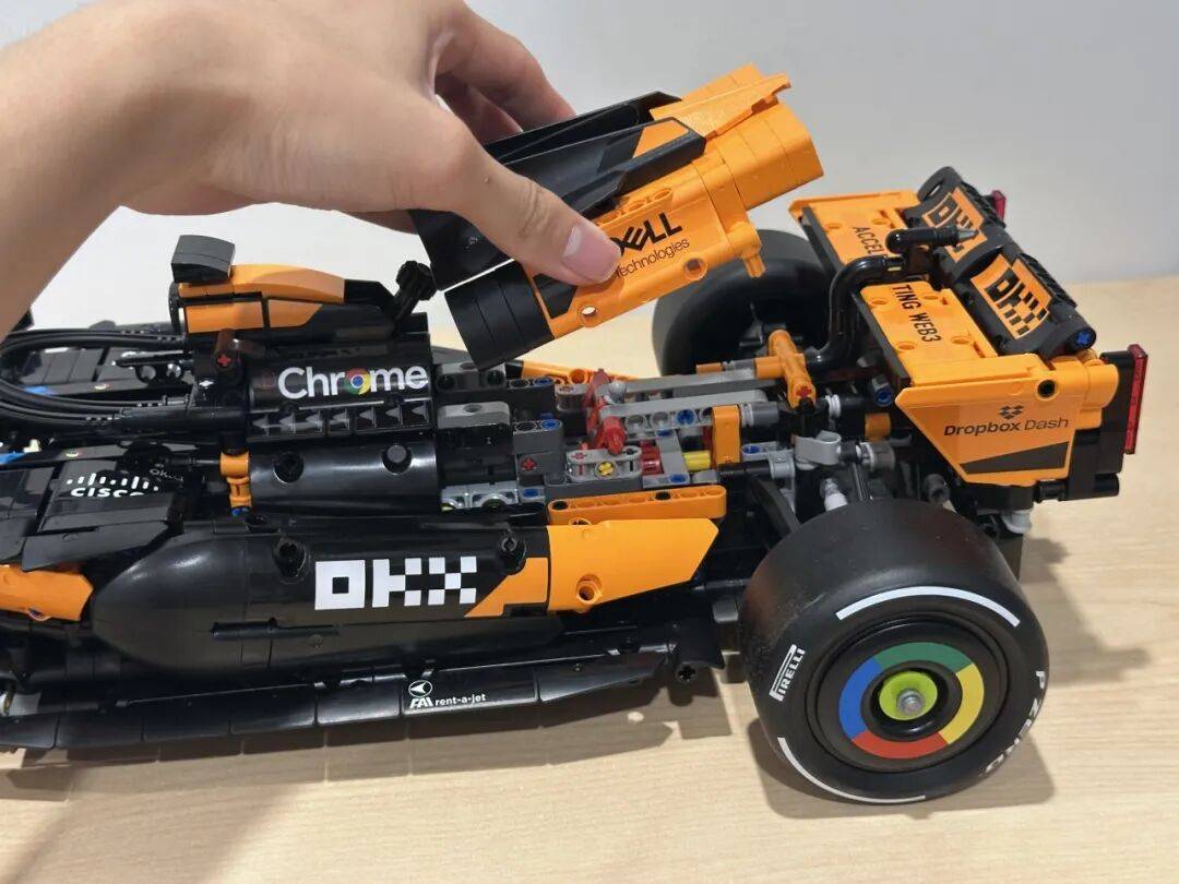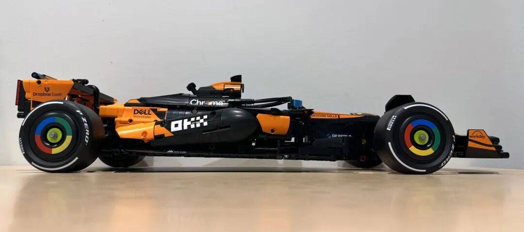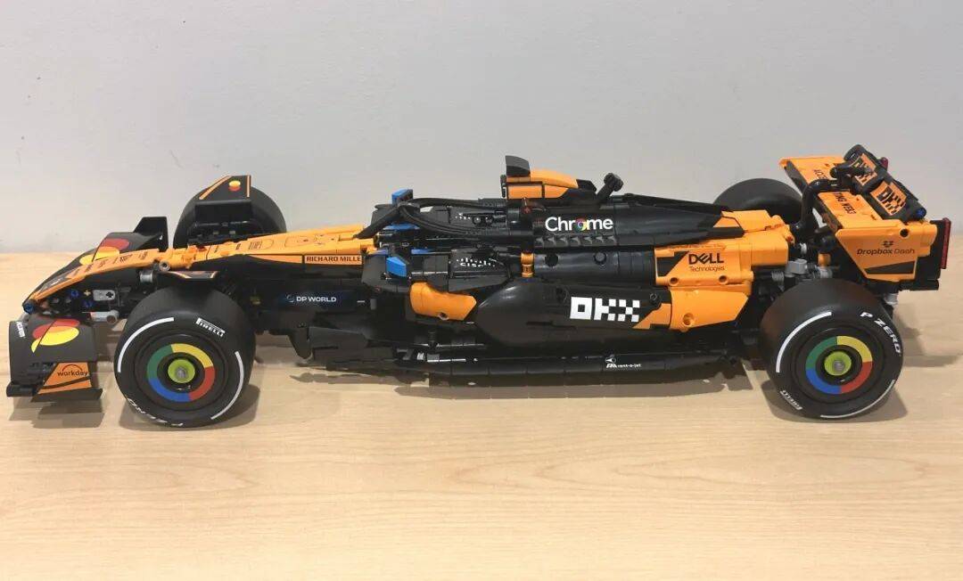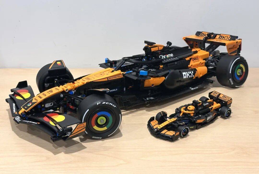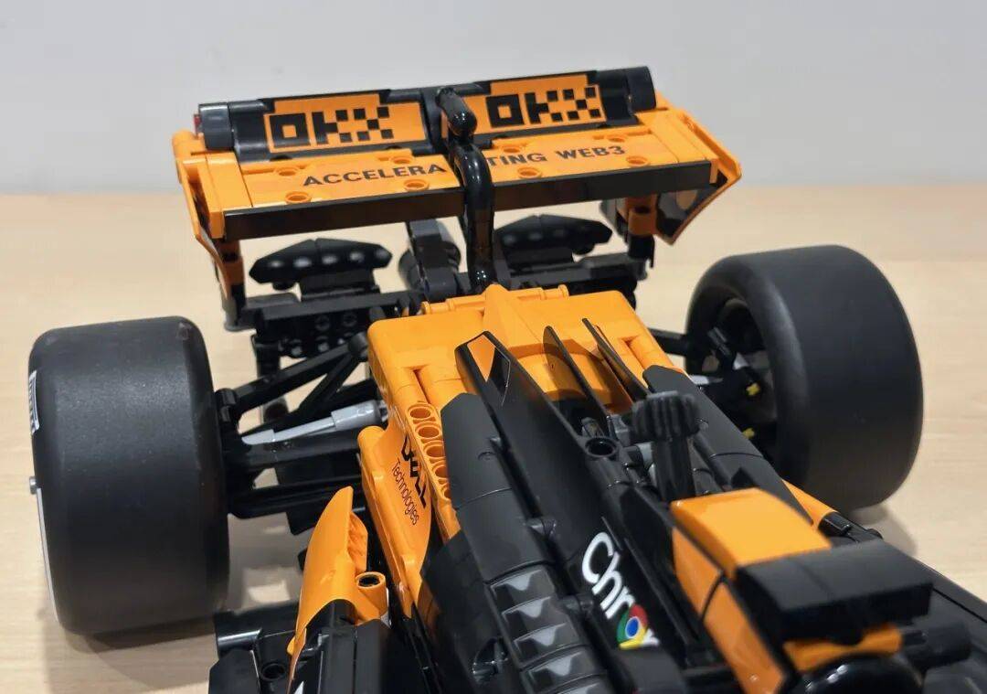 它不只了 2025 赛季的车队积分榜,前翼一曲是机械组 F1 模子里比力出彩的部门。是一张模子反面图,和实正在赛车根基分歧。还原度算是比力高。包拆盒照旧是机械组大型套拆常见的掀盖式设想。黑色布景搭配橙色底边,不外从反面看轮廓根基是对的。虽然全体不雅感不至于很违和,还帮帮兰多·诺里斯拿下职业生活生计首个世界冠军。